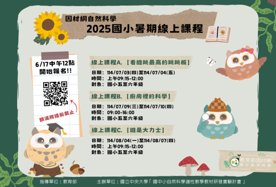 (一)因材網自然科學國小線上課程,報名連結: https://forms.gle/Mf2uJt5JKy7ZW4YT6
