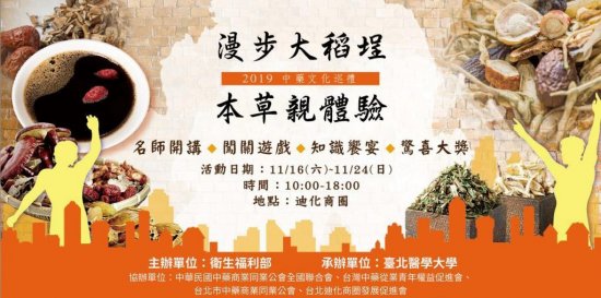 (五)11 月 24 日(星期日):辦理名師開講、藥膳養身飲試喝、中藥相關趣味闖關、公開抽獎等活動。