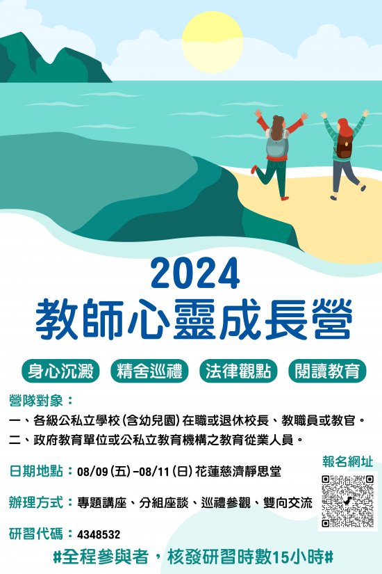 一、本會暨所屬之教師聯誼會與慈濟大學師資培育中心合作辦理【教師心靈成長營—尋覓教育桃花源】營隊活動。