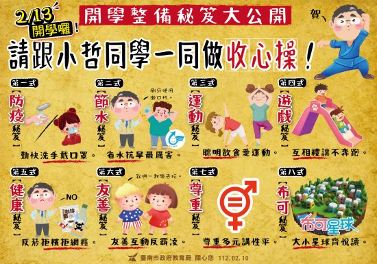 一、 111 學年度第 2 學期開學之際,市長期與各位教育夥伴、家長共同守護學生身心健康及學習要點,爰製作旨揭文宣,提醒開學整備事項。