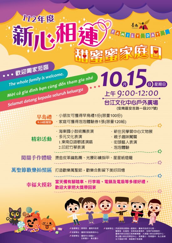轉知家庭教育中心辦理112年「新心相連─甜蜜蜜家庭日活動」,內容如附件