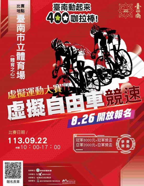 三、檢附旨案活動文宣 1 份,詳細活動資訊請洽臺南市政府體育局官網: https://sports.tainan.gov.tw/html2/services?mesg_guid=66cbd21d01b95
