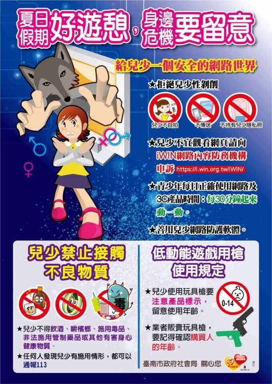 為落實暑期保護青少年-青春專案,強化青少年兒少法治觀念、提升其自我保護能力,提醒青少年學生人身安全之重要性,避免被害事件發生