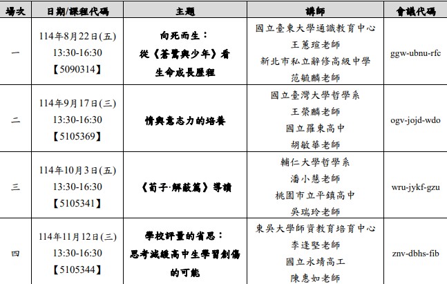 「114 學年度生命教育學科中心暨國語文學科中心主題精進課程:經典閱讀沙龍(線上讀書會)」相關資訊