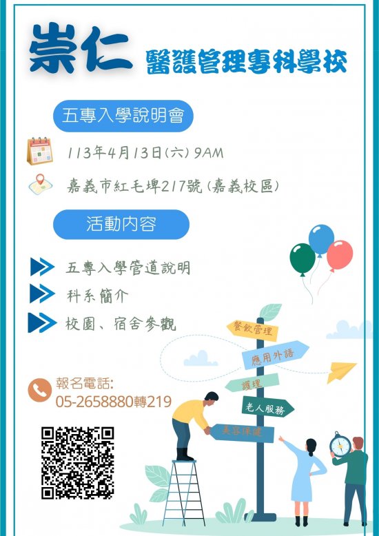 四、五專免試入學說明會海報及招生資訊請見附件。