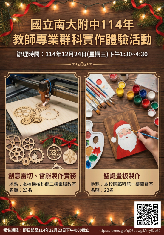 五、報名期限:即日起至 114 年 12 月 23 日下午 4:00 截止。