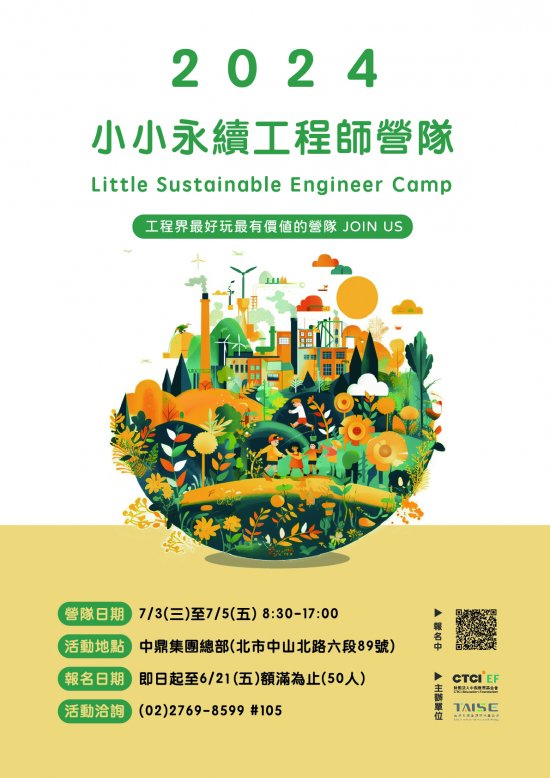 一、聯合國永續發展目標(SDGs)已是全球政府、教育、企業領域的共通語言,永續發展教育(ESD)與永續發展目標之整合運用係全球最新趨勢。本會主辦「2024 小小永續工程師營隊」期能提升國小學童在環境永續、工程領域相關的專業知能,培養其創造力與自主學習力。