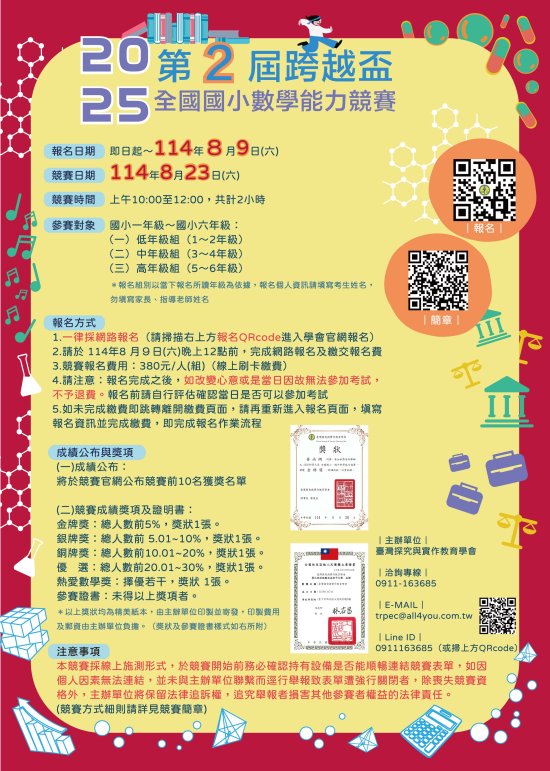 三、競賽日期: 114 年 8 月 23 日(六)上午 10:00~12:00 。