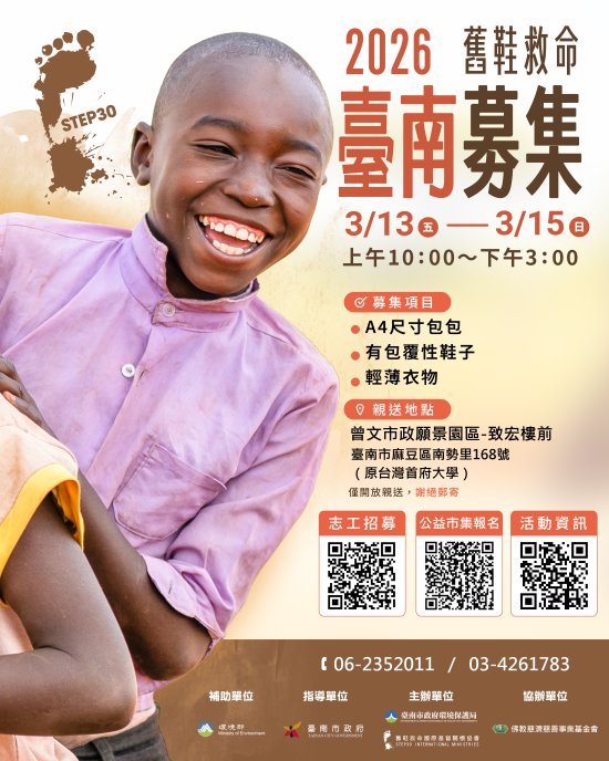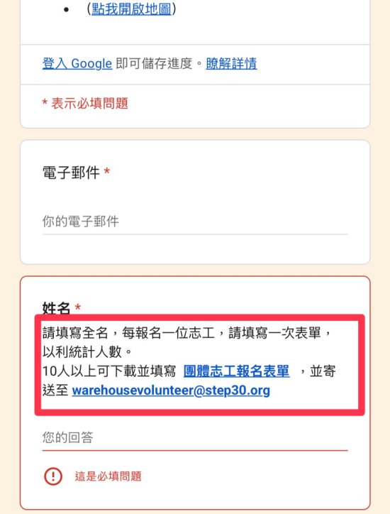 二、本次活動需招募志工協助現場引導民眾、物資整理等相關 工作,敬請惠予轉知所屬同仁,倘有意願擔任志工者,請 於 115 年 3 月 1 日前完成線上報名(報名網址: https://forms.gle/owJGzqJuA5cAe7PY8 )。為利統計本府各 機關志工參與情形,請報名同仁務必於表單中填寫任職單 位;如採團體報名,請下載填寫團體報名表(如附件三說 明),並以電子郵件寄送至 warehousevolunteer@step30.org 。參與志工服務者,將由本活動共同主辦單位「舊鞋救命 國際基督關懷協會」開立志工服務時數證明。