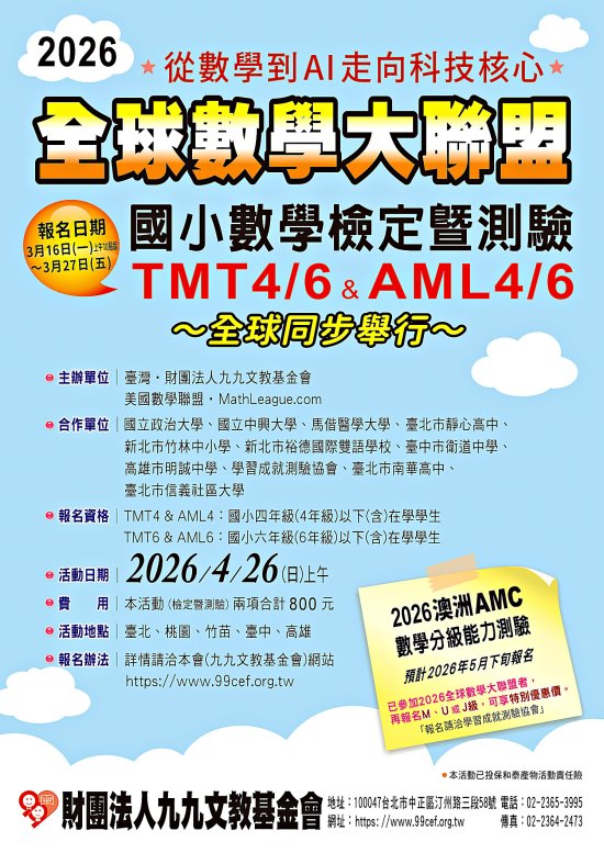 八、隨函附上本檢測之活動簡章、海報及團報用 EXCEL 檔,敬請協助公告俾使有意參與之學生、家長知悉。
